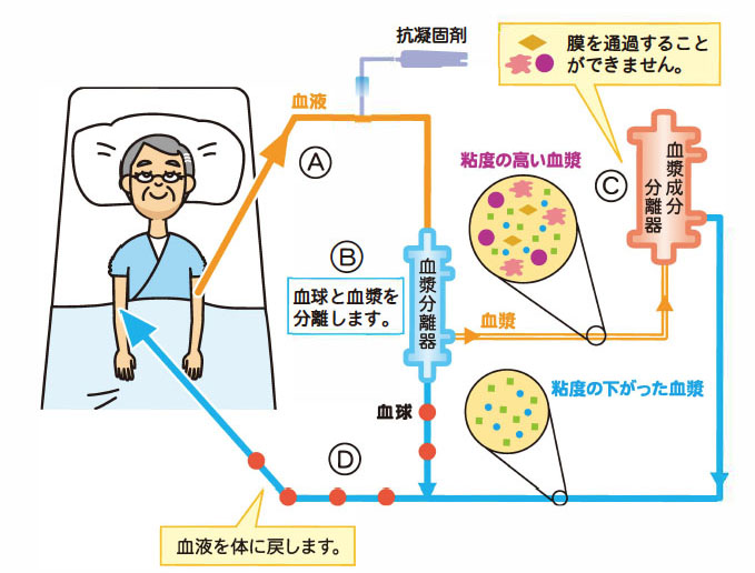 ★在应用透析技术的基础上,从血液中只除去不必要的成分(这次只去除低密度脂蛋白胆固醇),和一次急剧调整体内多种成分的人工透析相比,对人体的副作用极少。
